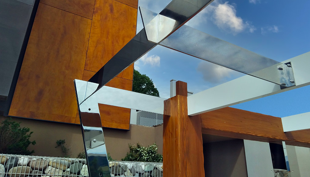 Realizzata in tubolare e lamiera di acciaio inox AISI 304 lucido. Basamento anti ribaltamento in metallo con carter di copertura in acciaio inox AISI 304 lucido.